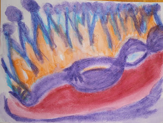 Projection : After I finished this I saw the Moon as I had seen it the night before the Tenth Anniversar y of 9/11. It was not my intention as I played with the colors.